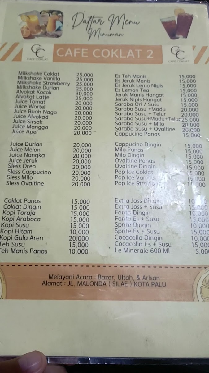 Welcome to Cafe Coklat 2 Silae, a vibrant culinary haven located in the heart of Silae, Palu. Just a stone's throw from the beach, this cafe offers a refreshing ambiance perfect for relaxation with friends and family. The menu is impressively varied, catering to diverse tastes with an array of dishes from tantalizing snacks to satisfying main courses.